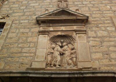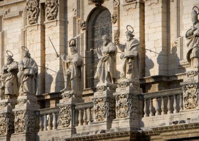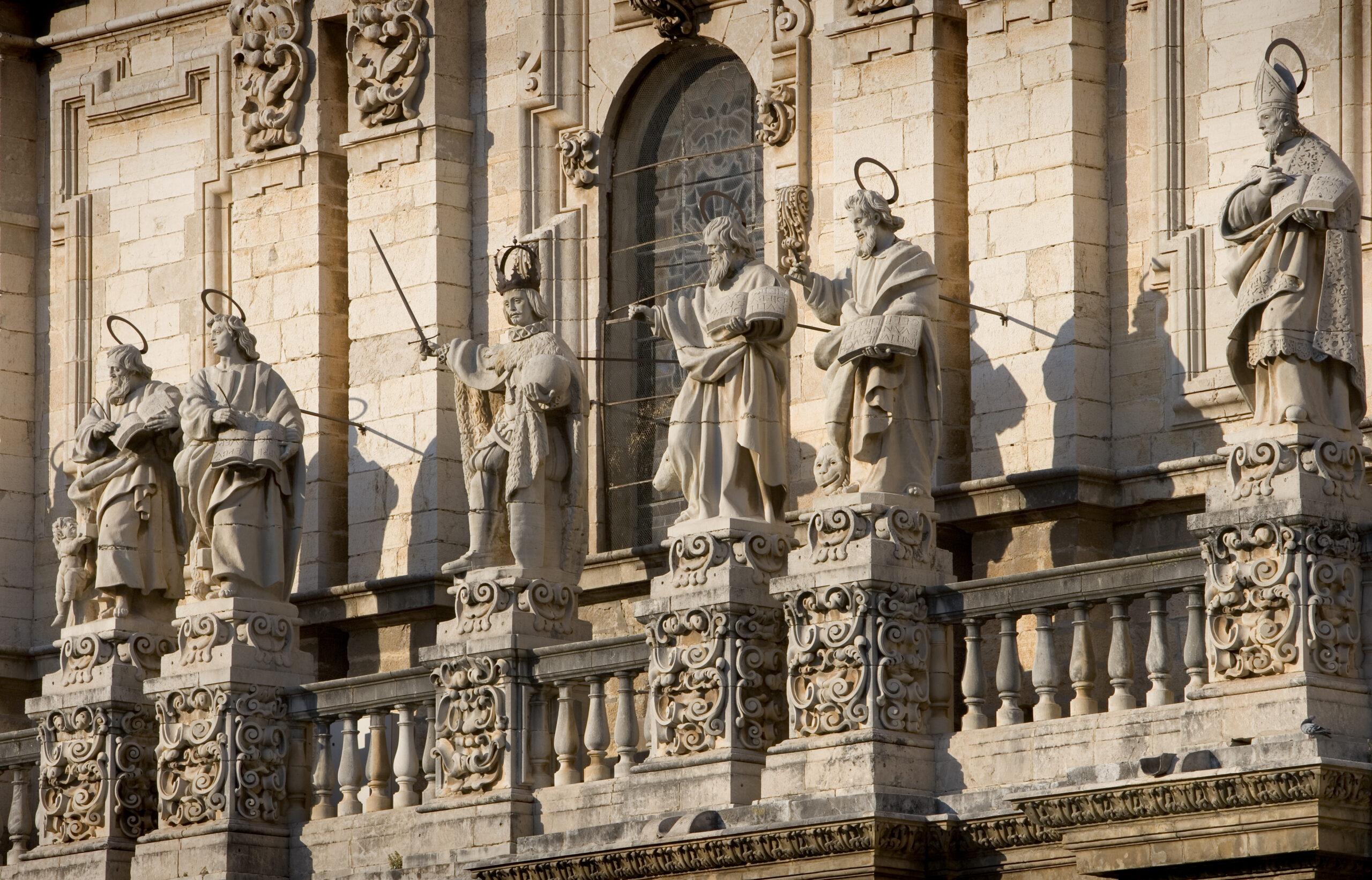 Grupo escultórico en la fachada principal de la Catedral de Jaén. En el centro Fernando III el Santo.