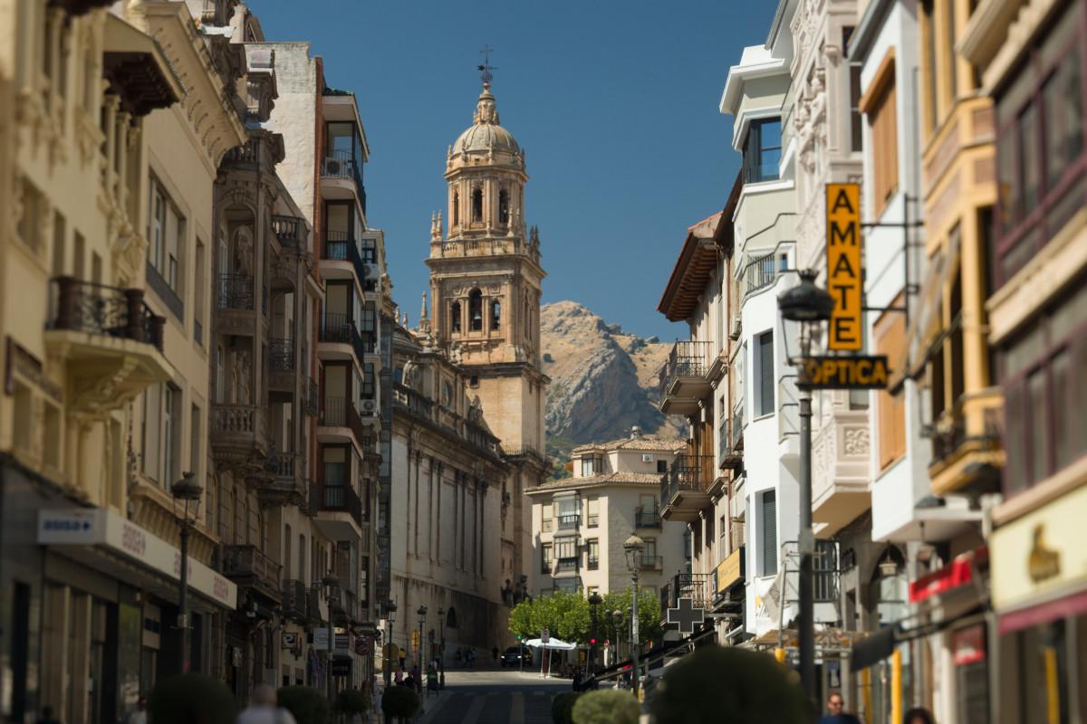 Calle Bartolomé Soriano con la Catedral de Jaén al fondo.