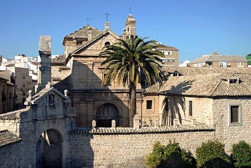 Muy cerca de aquí nos encontramos con el Convento de Santo Domingo, actual sede del Archivo Histórico Provincial, establecido sobre los vestigios de los palacios de los gobernantes musulmanes. Del edificio destaca su claustro del siglo XVI y su antiguo templo, hoy cerrado al culto. La iglesia, de una sola nave con bóvedas de media naranja sobre pechinas, cuenta con una capilla mayor de planta poligonal y bóveda de nervios. Las pinturas murales que decoraban la bóveda de la iglesia fueron trasladadas al Museo de Jaén para una mejor conservación. El claustro, construido en la segunda mitad del siglo XVI, tiene una planta cuadrada con galerías de arcos de medio punto. Su estructura de dos cuerpos combina una bóveda de medio cañón con lunetos en el nivel inferior, mientras que el superior alterna vanos abalconados con decoración vegetal y ventanas con motivos alegóricos. Su portada es obra de Alonso Barba, aunque las imágenes que la decoran son de época posterior.