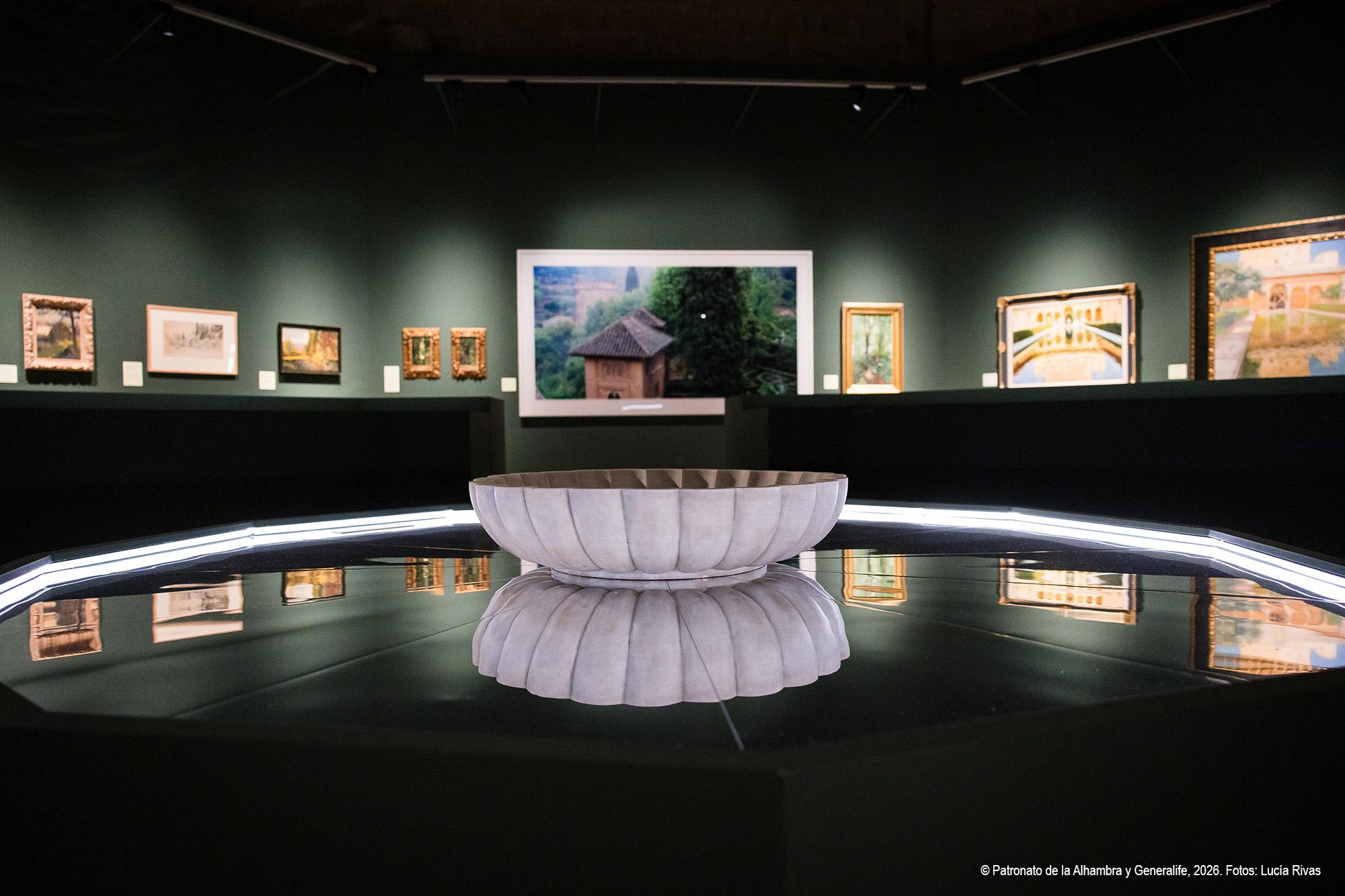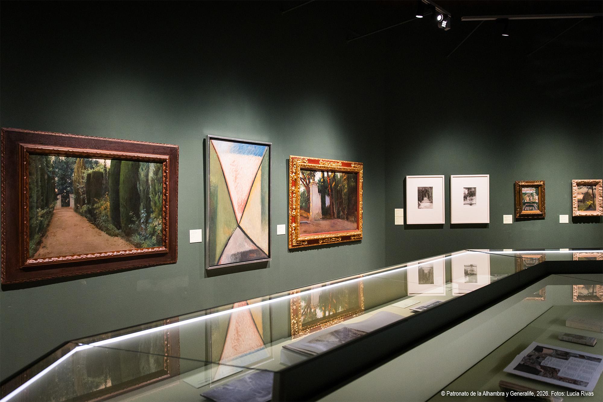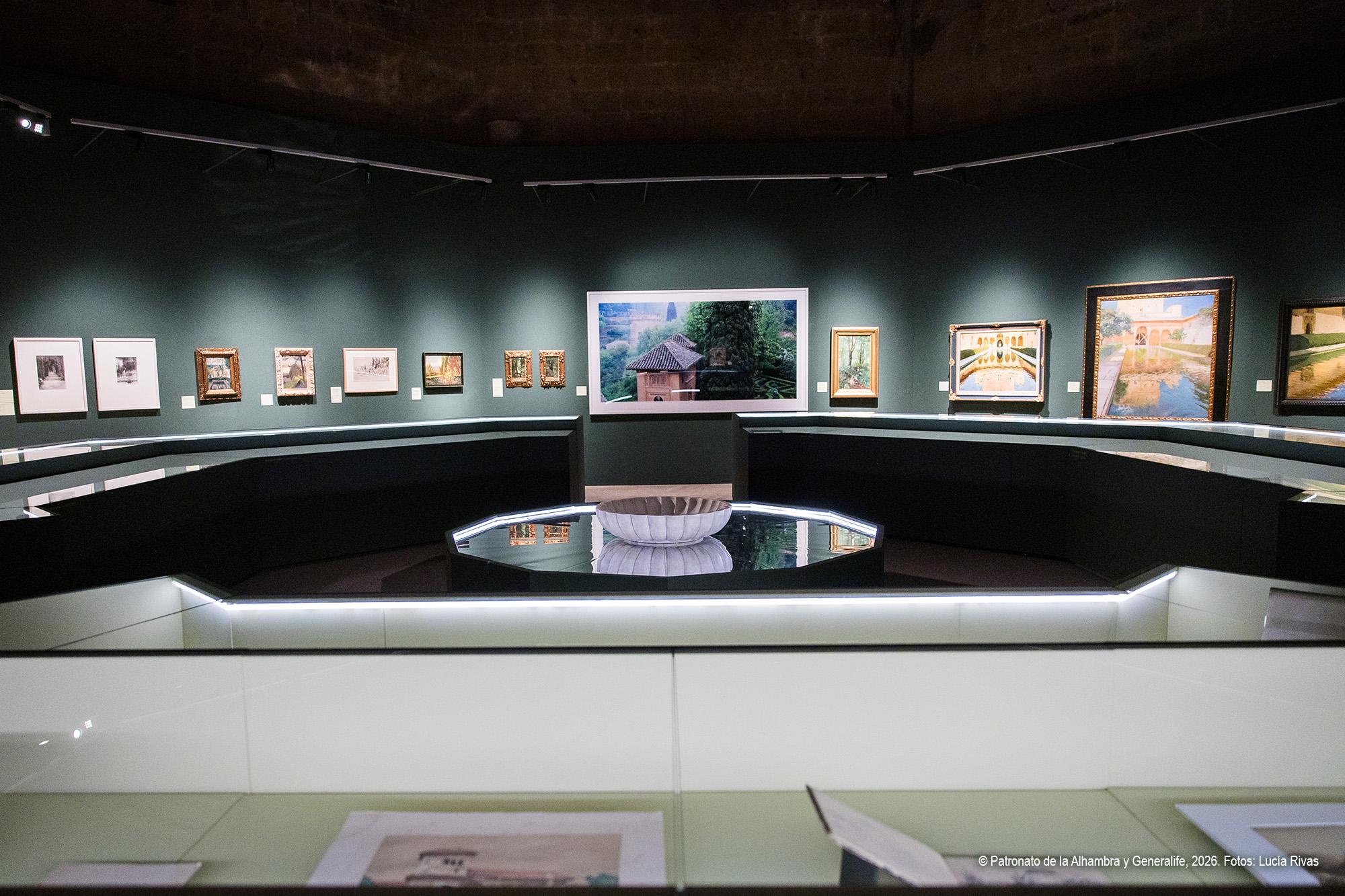 La exposición se articula en varias secciones temáticas que permiten comprender la complejidad del paisaje alhambreño.