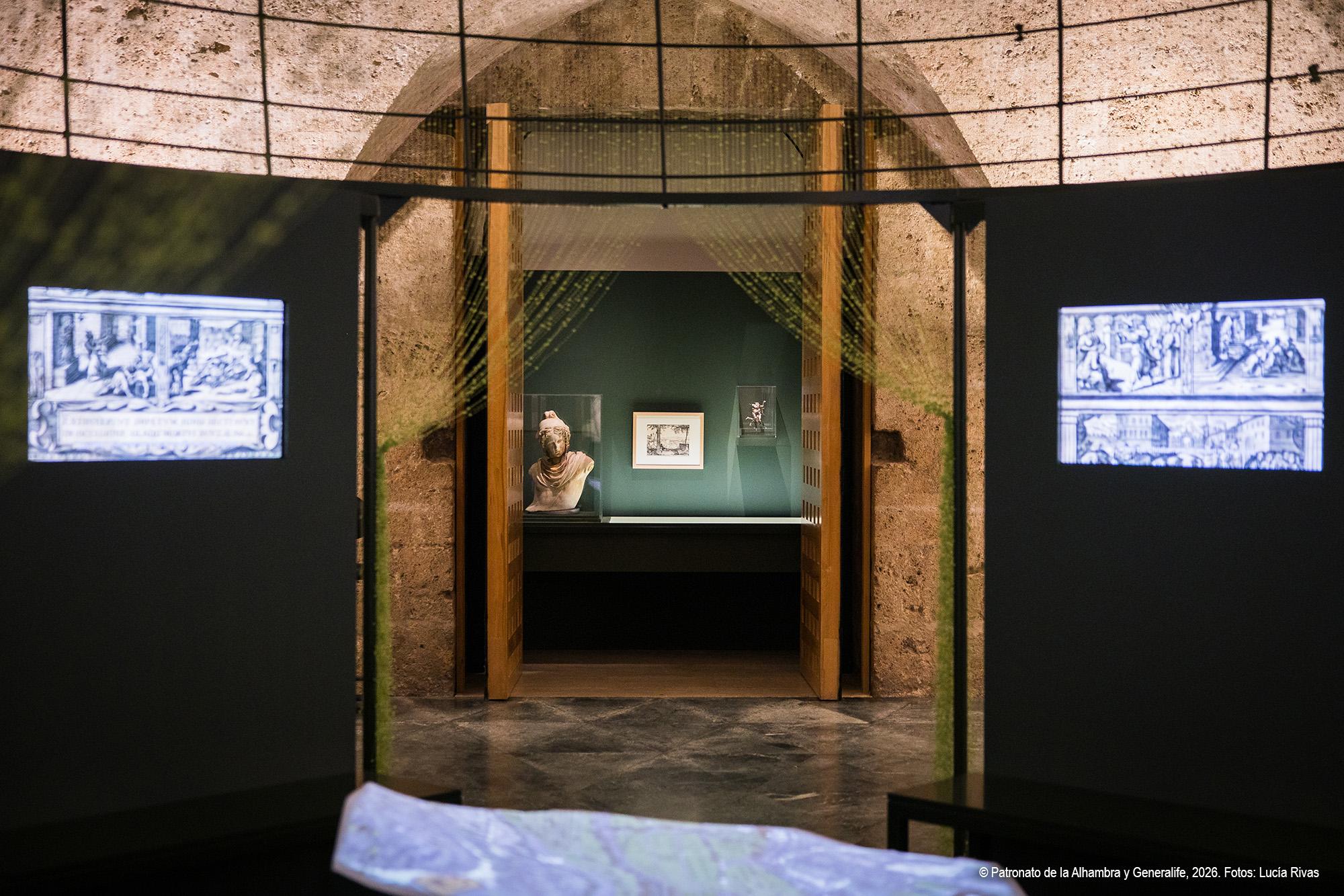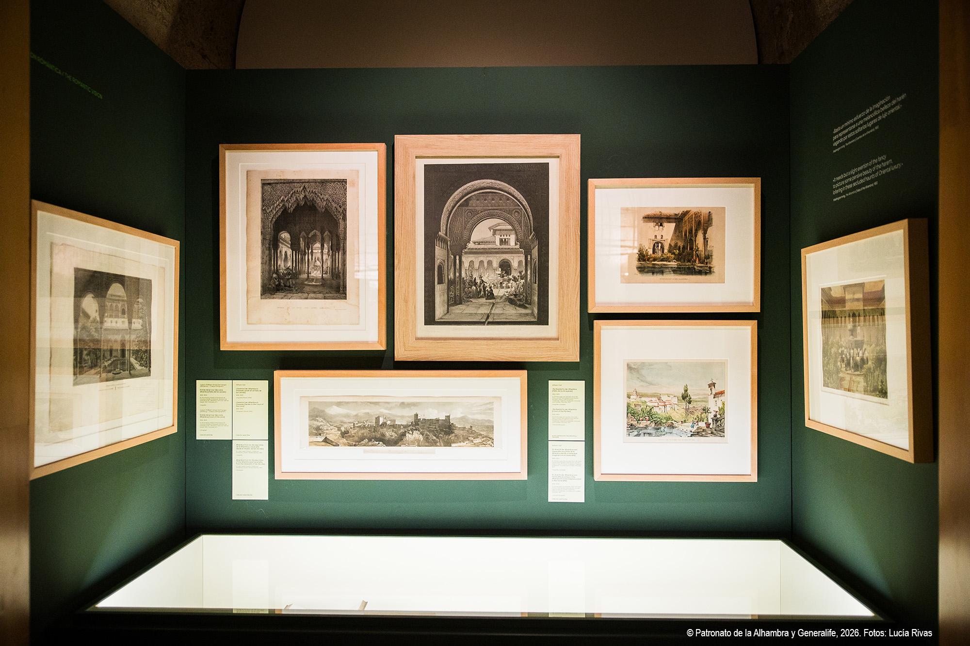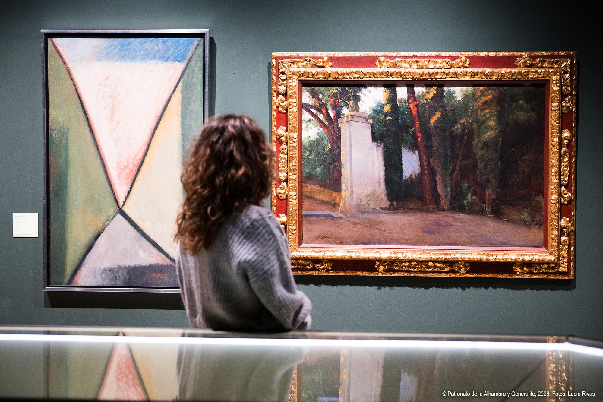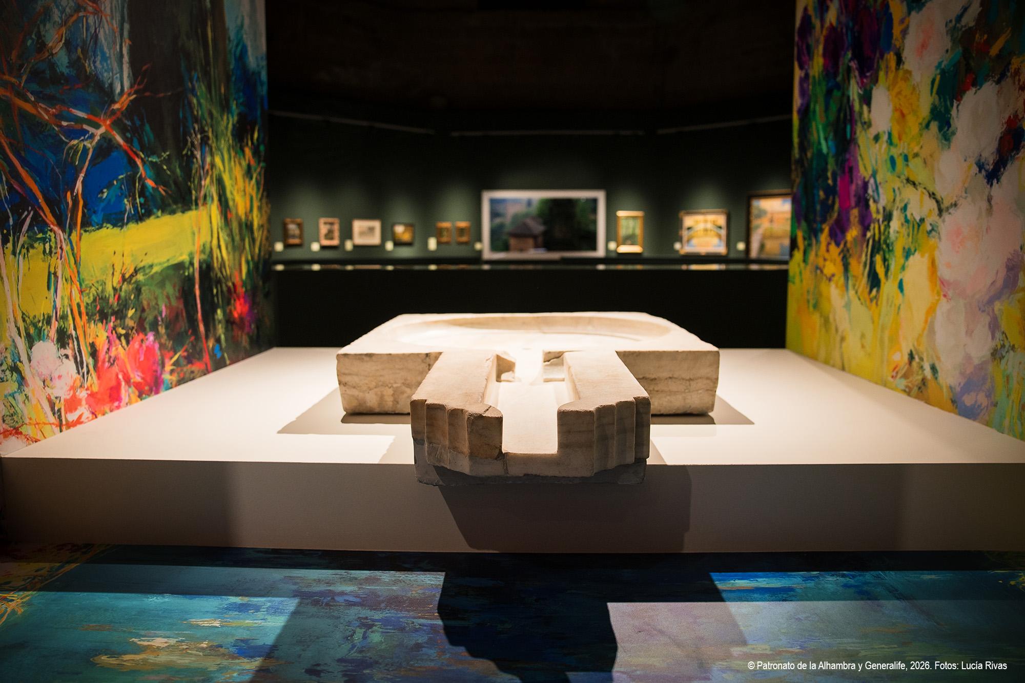 La exposición se articula en varias secciones temáticas que permiten comprender la complejidad del paisaje alhambreño.
