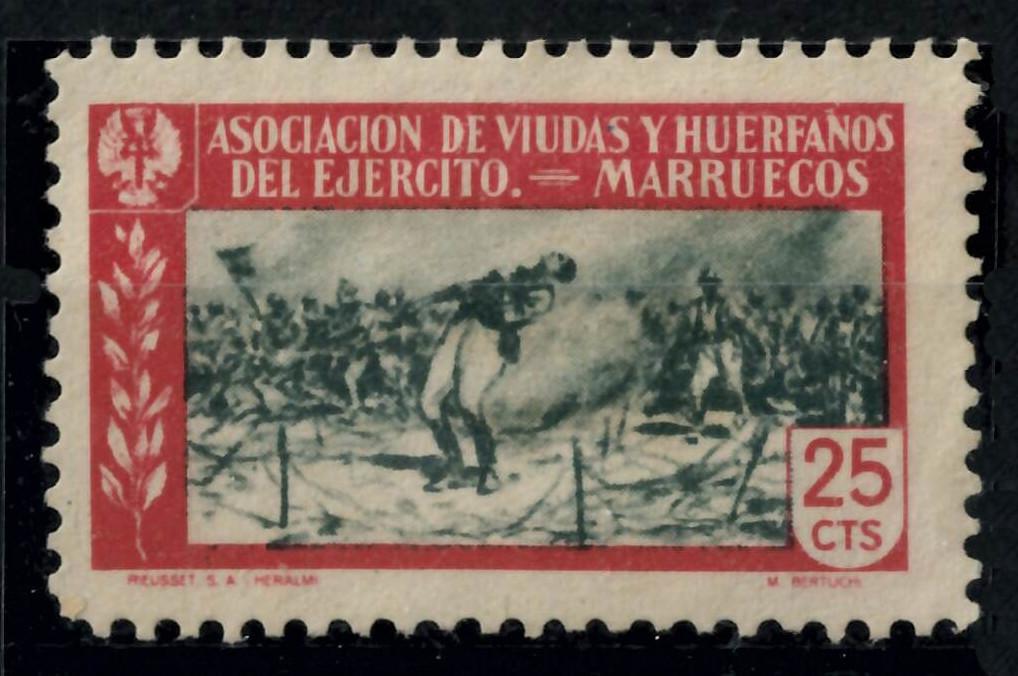 En el Protectorado también se emplearon viñetas benéficas, algunas de las cuales procedían de su pincel. Podemos mencionar las emitidas en beneficio de la Asociación de Viudas y Huérfanos del Ejército, con escenas bélicas, las dedicadas a la Mutua de Personal de los Ferrocarriles de Marruecos o las destinadas a la Asociación Benéfica de Funcionarios de la Zona.